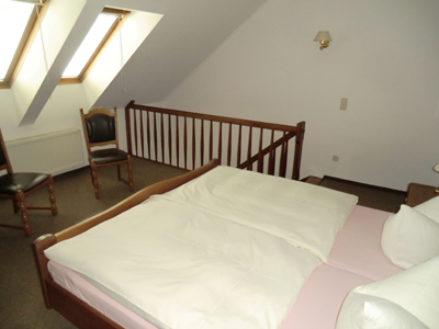Nun hatten wir ein zwei Etagenzimmer. Schlafzimmer oben, und Wohnzimmer, Bad usw. unten.